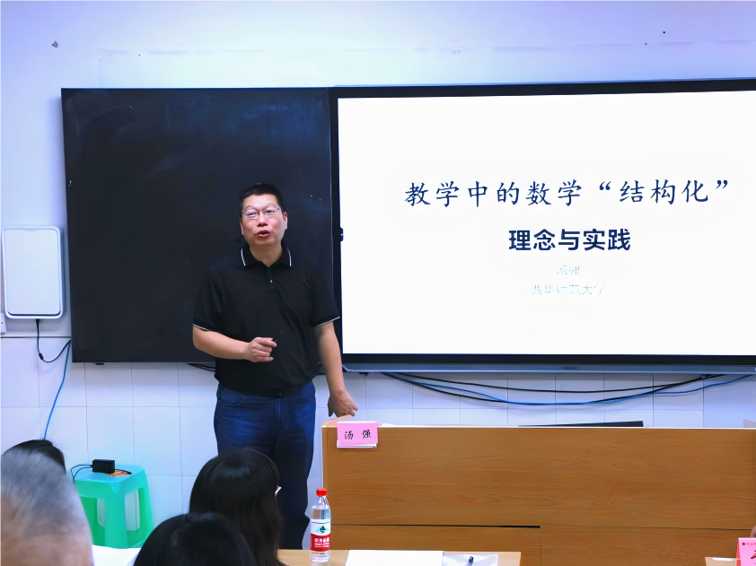 初中组邀请了西华师范大学数学科学学院硕士生导师汤强教授,他通过多个案例,经过初识、重识、再识三个过程,探讨数学结构化在教学中的呈现方式,分析教学促进数学结构化的策略与路径。与会人员还围绕初中数学课堂的教学情境设计、任务设计、作业设计、学习内驱力、人工智能的应用等方面展开了探讨。