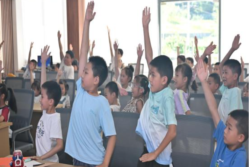 7月23日上午,实践团精心策划的“童趣交响・田野追光”主题活动在村民委员会开展。实践团用动画短片讲述刘徽割圆术等数学史故事,为孩子们科普数学史,引领他们结识高斯、阿基米德等数学巨匠,助力孩子们在欢乐中提升数学思维。通过“农业知识抢答赛”“你比我猜(农具版)”等趣味游戏,带领孩子们认识农作物及种植方式,培养尊重劳动、热爱乡土的情怀。活动尾声,实践团组织孩子们将自己的心愿写在彩纸上,并折成纸飞机集体放飞,让稚嫩的梦想在田野上空划出美丽弧线。