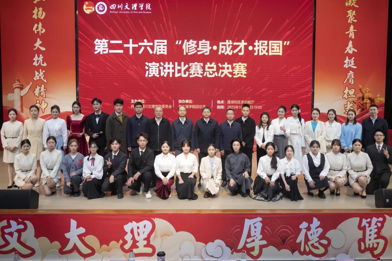 为深入学习贯彻习近平总书记在纪念中国人民抗日战争暨世界反法西斯战争胜利80周年大会上的重要讲话精神,贯彻落实新时代廉洁文化建设和红色文化育人工程要求。10月29日晚上,我集团第二十六届“修身·成才·报国”演讲比赛决赛在莲湖校区艺术传媒大楼多功能厅隆重举行。